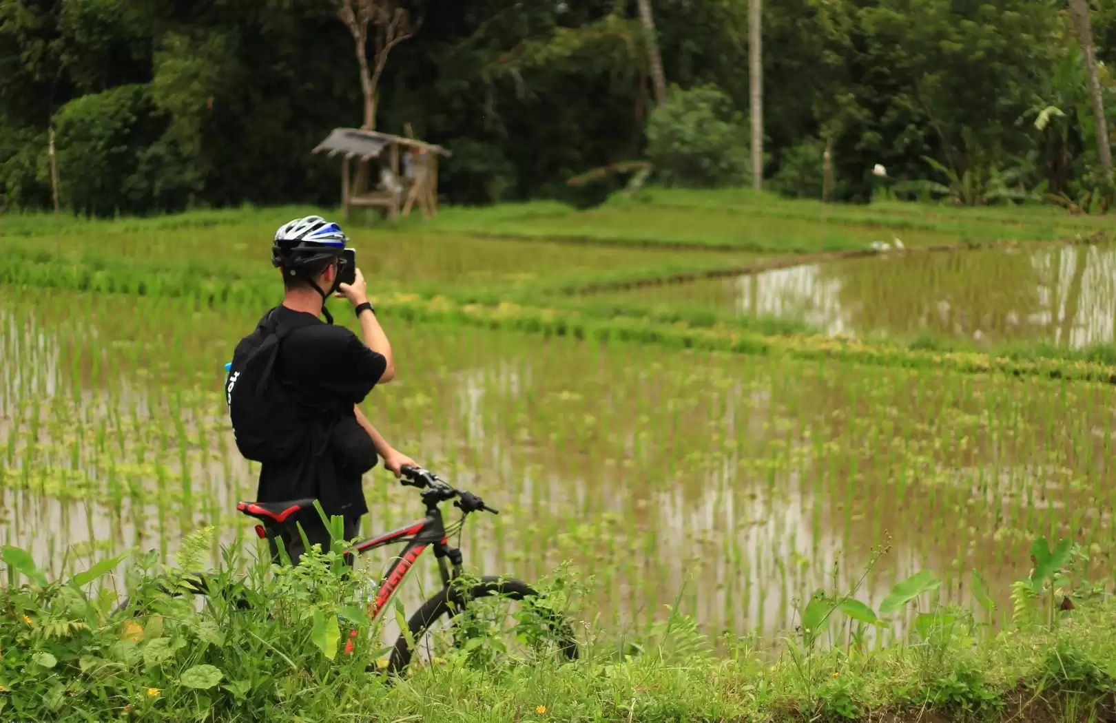Start your journey in the cool, misty highlands of Kintamani, where panoramic views of Mount Batur and its volcanic crater lake set the stage for your downhill adventure. The fresh mountain air and scenic beauty provide the perfect beginning for your ride through Bali’s diverse landscapes. - Rice Field: