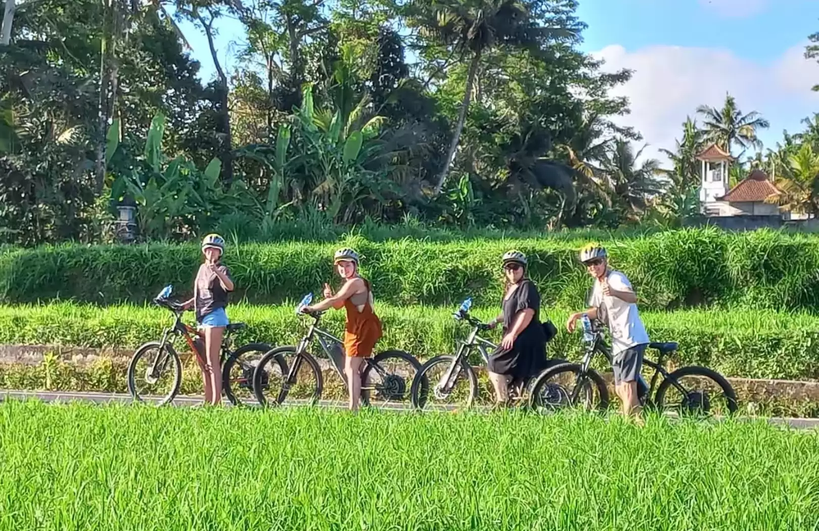Our Ubud e-bike tours include a fully guided ride, high-quality e-bikes, helmets, bottled water, and photo assistance at key attractions. We also provide a light lunch and transportation in a private, air-conditioned vehicle for maximum comfort.